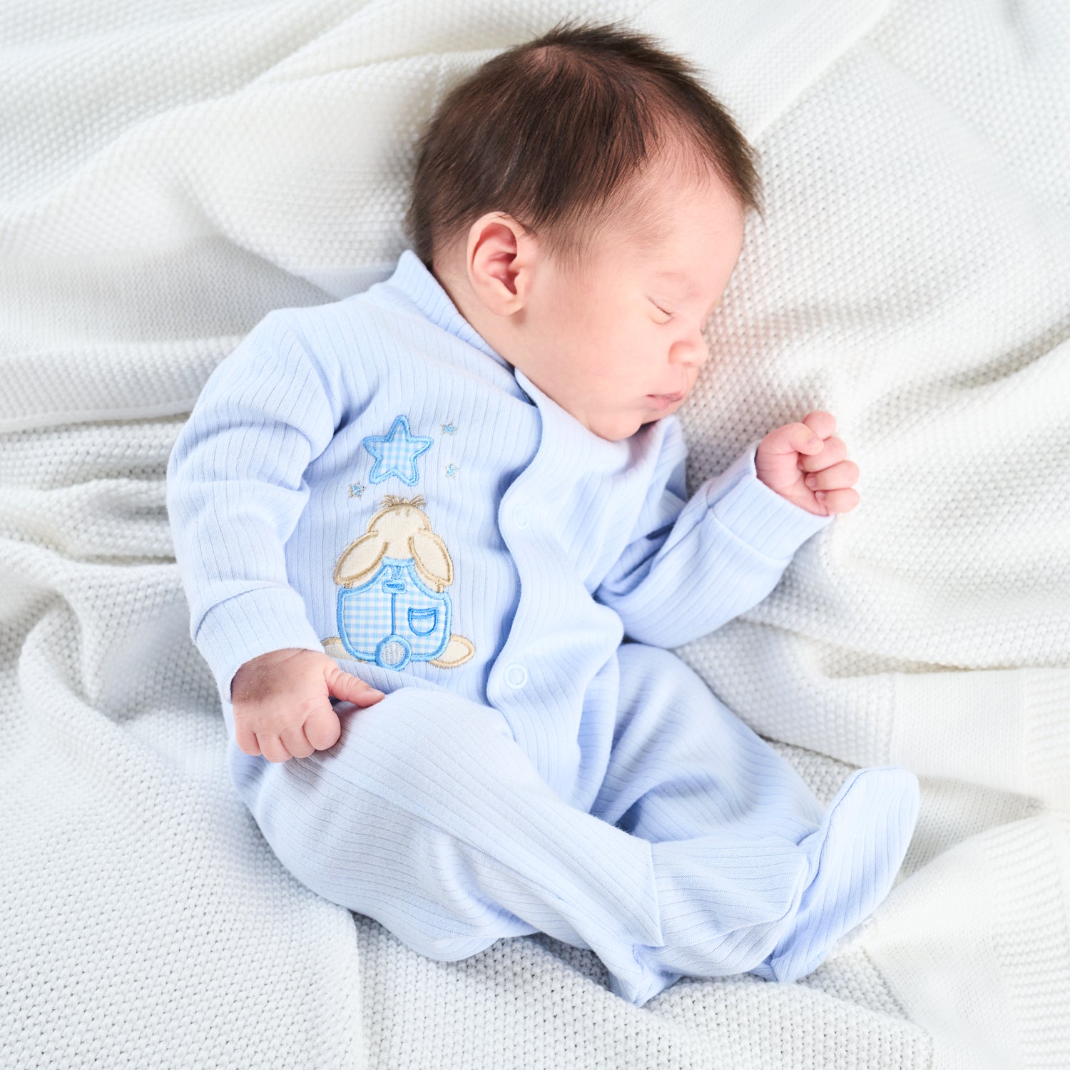 Ensure tiny early arrivals stay cozy with our Blue Premature Rabbit & Star Sleepsuit, thoughtfully designed for premature babies (newborn size up to 7 lbs). This charming sleepsuit combines adorable design with gentle functionality to support delicate needs.