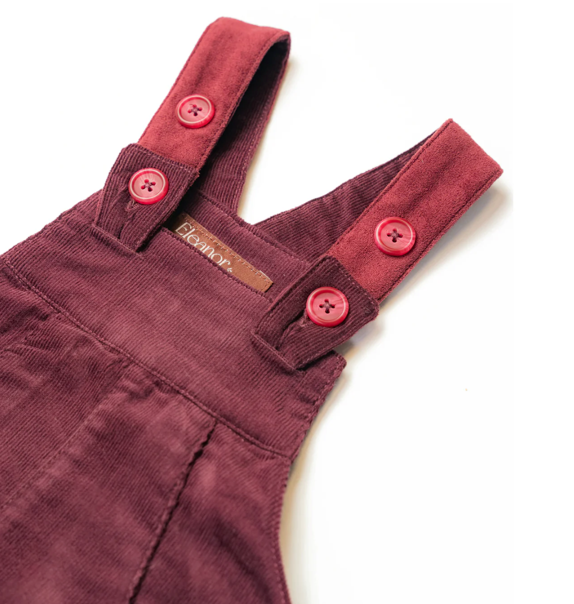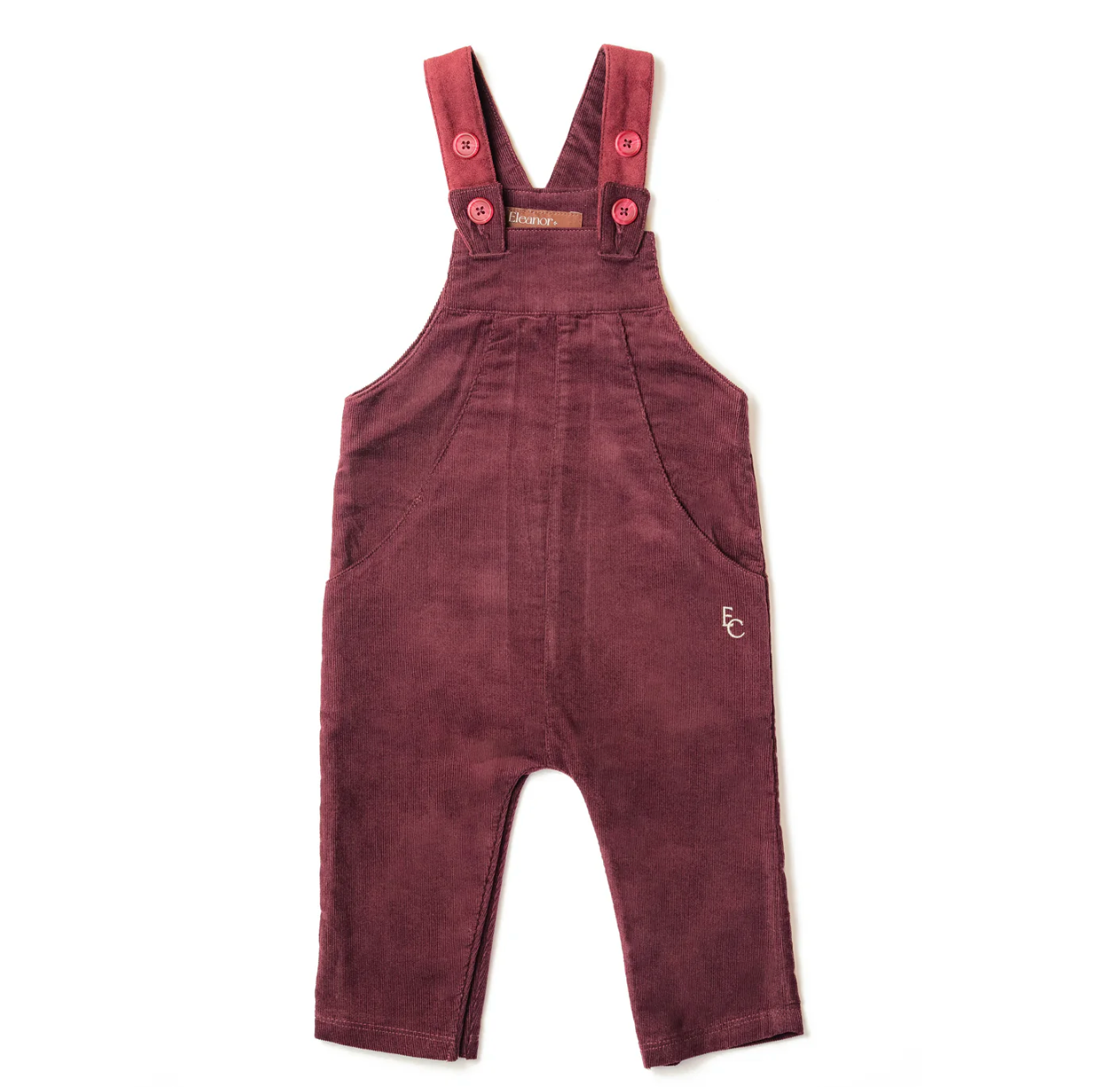 Burgundy corduroy dungarees which are super soft and lightweight, providing ultimate comfort and style.
