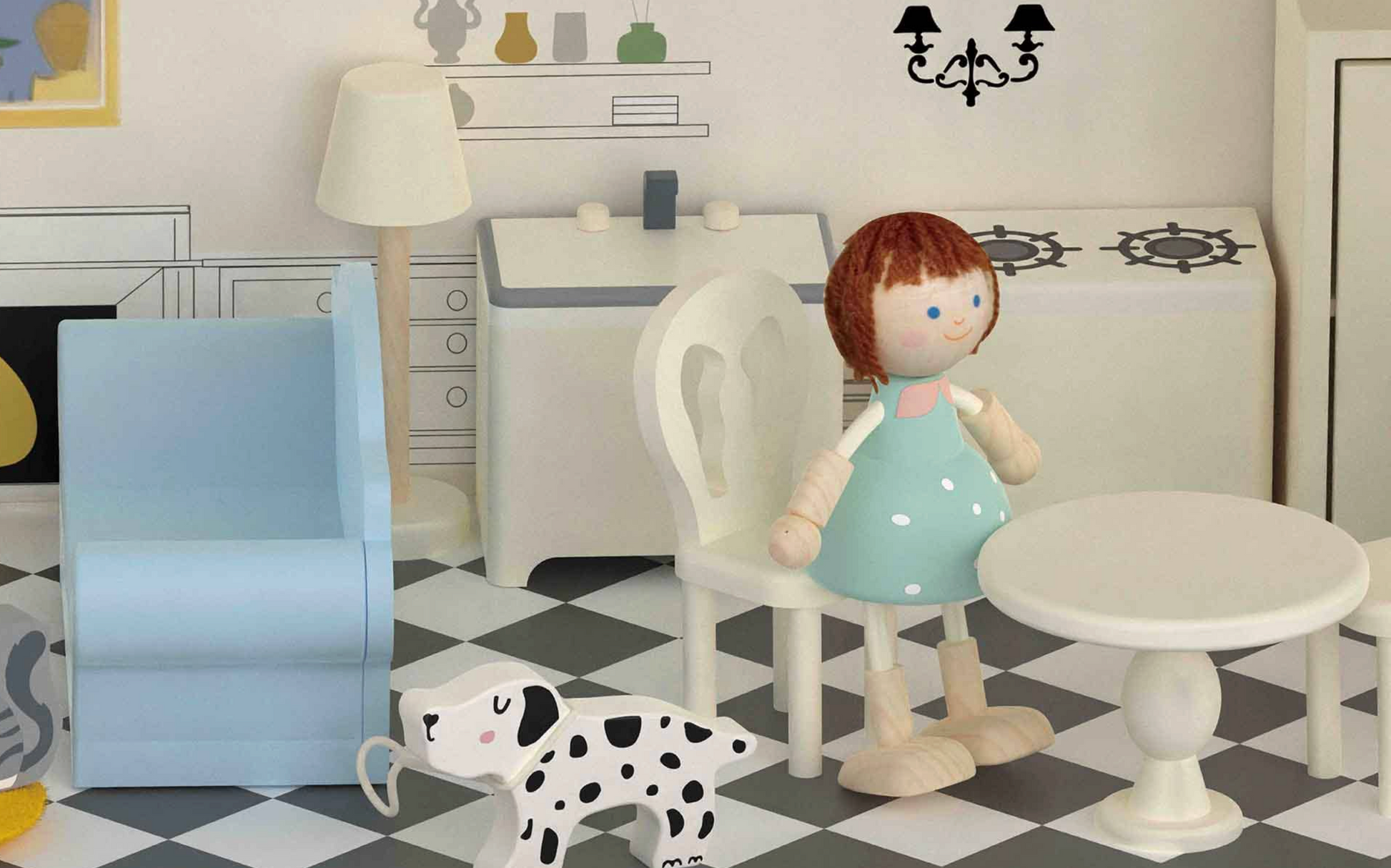 This 3 storey dolls house is beautifully decorated with assorted furniture, bringing that vintage look of the outside, inside the house too. It has everything your little one needs to create their own world and invent their own stories.
