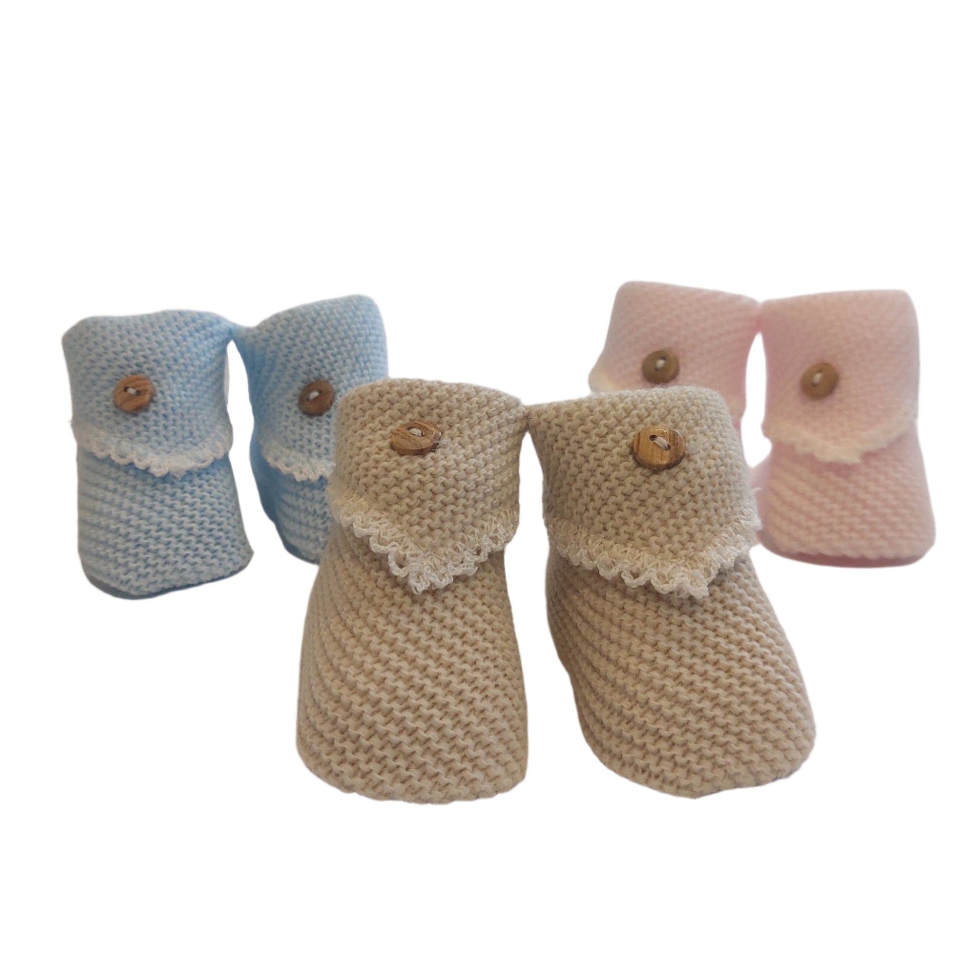 CROCHET KNIT BOOTIES WITH BUTTON - 3 COLOURS