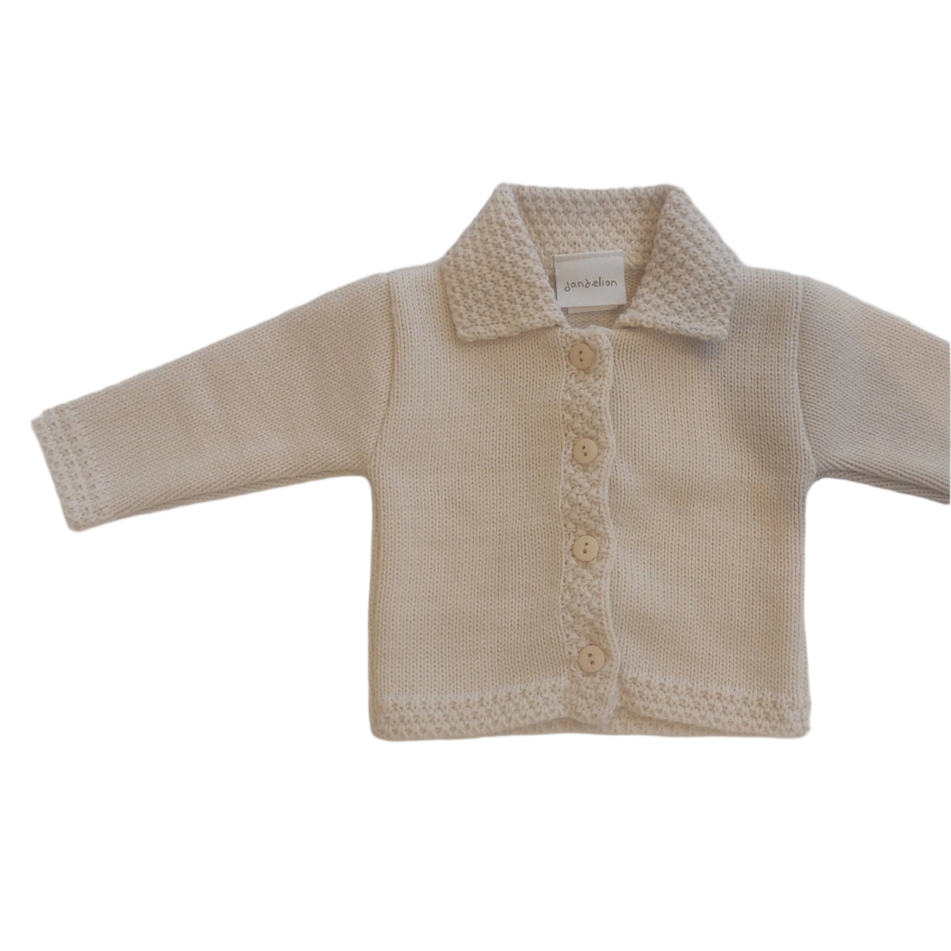 Add a timeless touch of style and warmth to your baby’s wardrobe with our Taupe Cardigan with Collar—a beautifully crafted knitwear piece made in Portugal for Dandelion.
