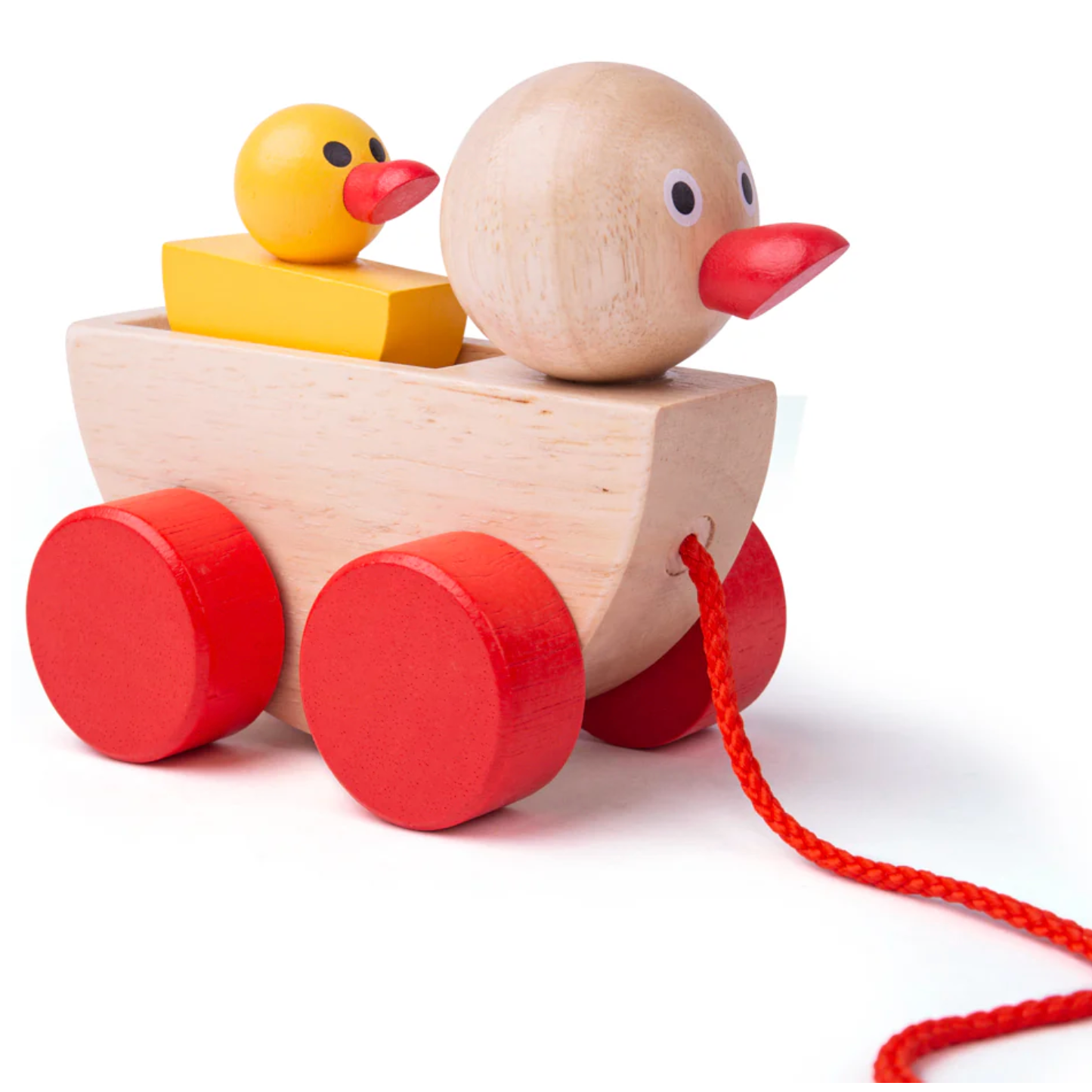 The bright red pull along rope is sturdy and safe - gentle enough for little fingers, but tough enough to endure enthusiastic play sessions. The Duck and Duckling wooden pull along aids in developing kids' coordination and dexterity skills, and is fantastic for helping tots improve their mobility.