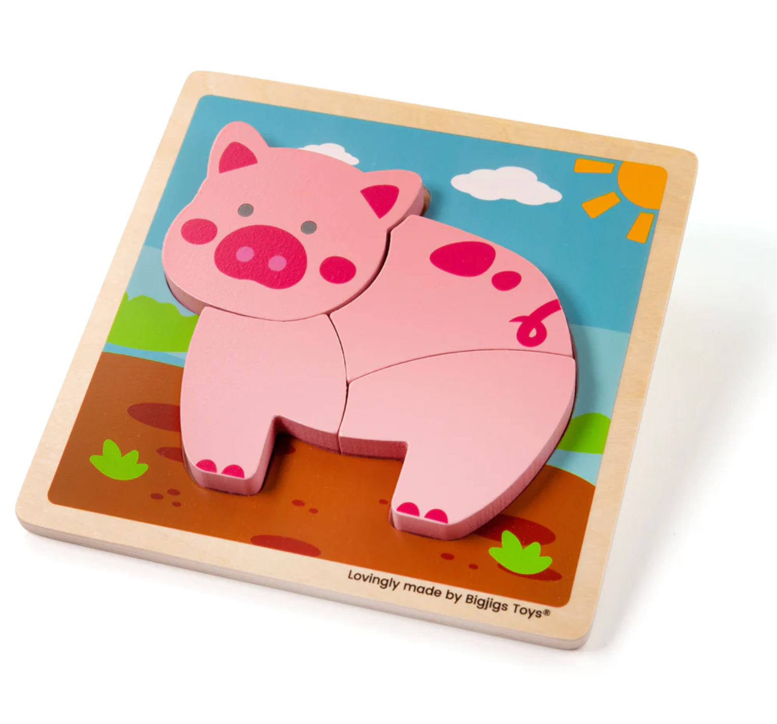 This wooden puzzle for toddlers comes complete with a smooth wooden baseboard with a pretty background scene. Toddlers can begin their journey with counting too, counting the puzzle pieces from 1 to 4. Also helps to develop fine motor skills and dexterity.