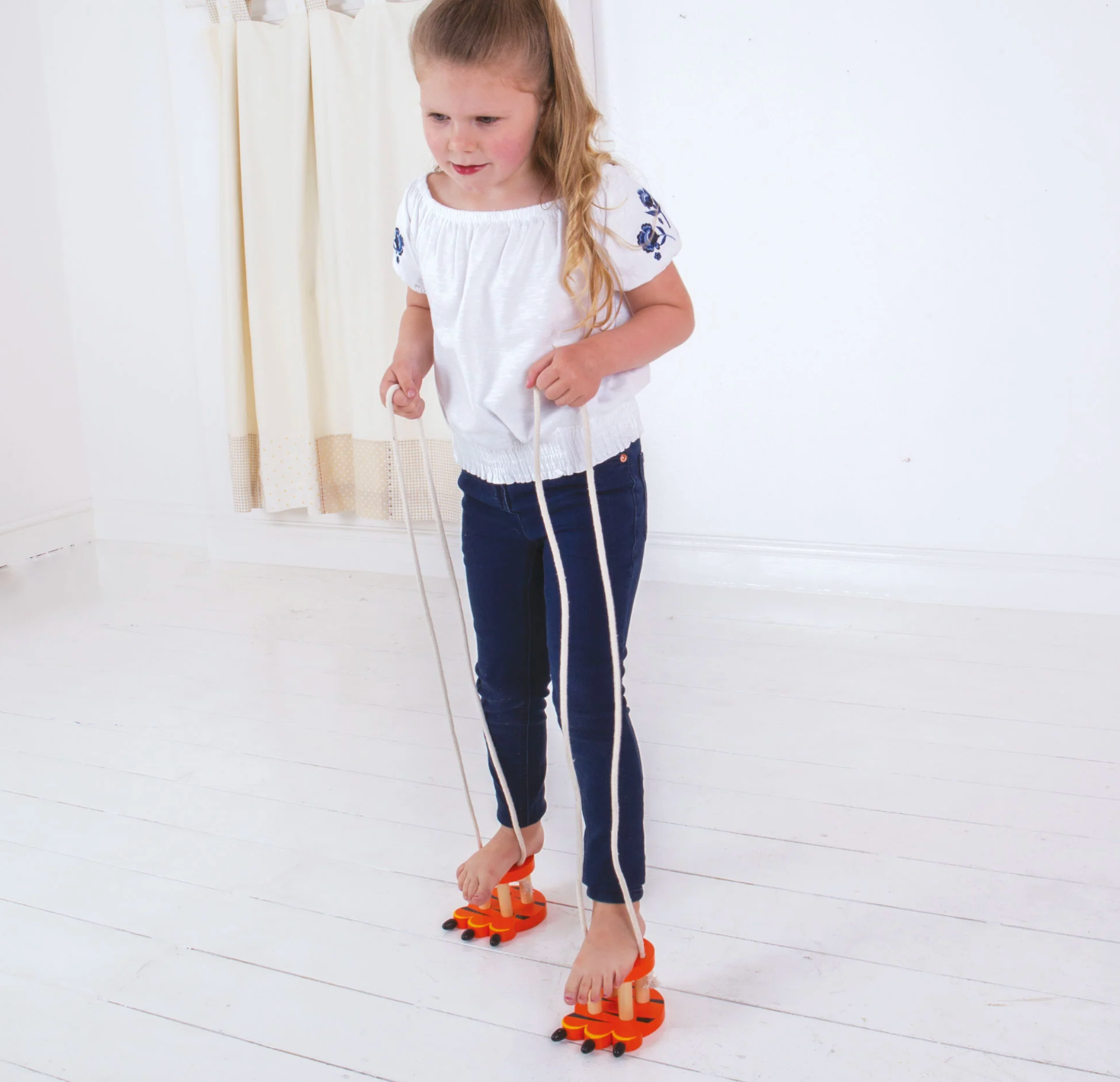 These lightweight wooden Footwalkers are brightly coloured and designed for little feet. Step up, hold on to the strings, then work out how to take your first steps! Excellent for extended play sessions among friends or to practice alone. Helps to develop balance and co-ordination skills. Made from high quality, sustainably sourced FSC® Certified wood. Conforms to current European safety standards. Consists of 2 play pieces.