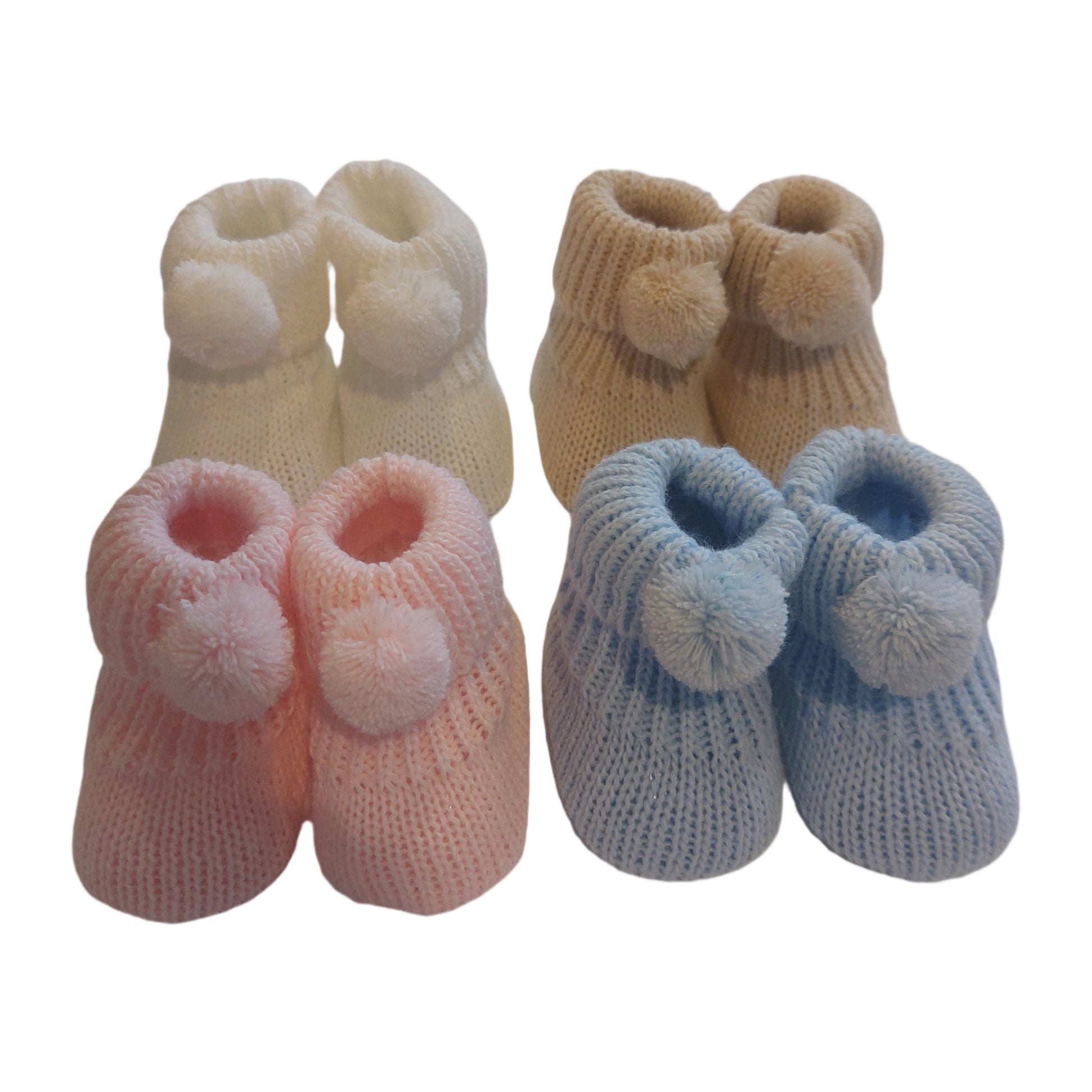KNITTED BOTTIES WITH POMPOM - 4 COLOURS