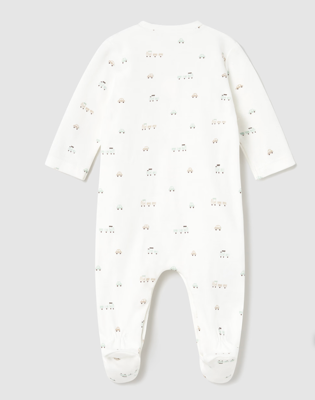 MAYORAL BABY TRAIN COTTON SLEEPSUIT - NEUTRAL TRAIN