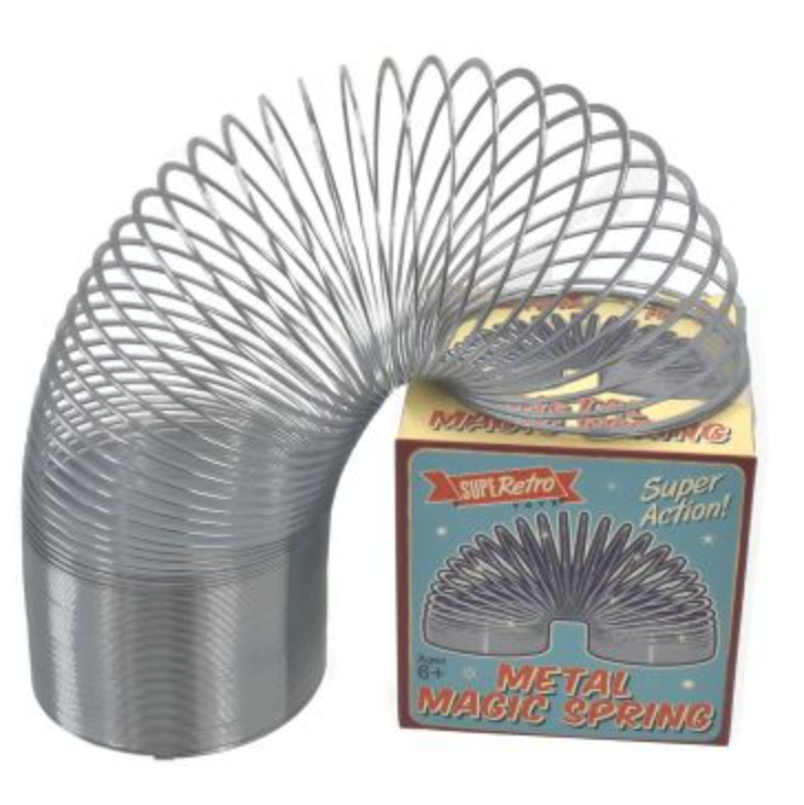 Metal magic springs each measuring 70mm. Have fun seeing them tumble end over end down the stairs. A great retro toy.