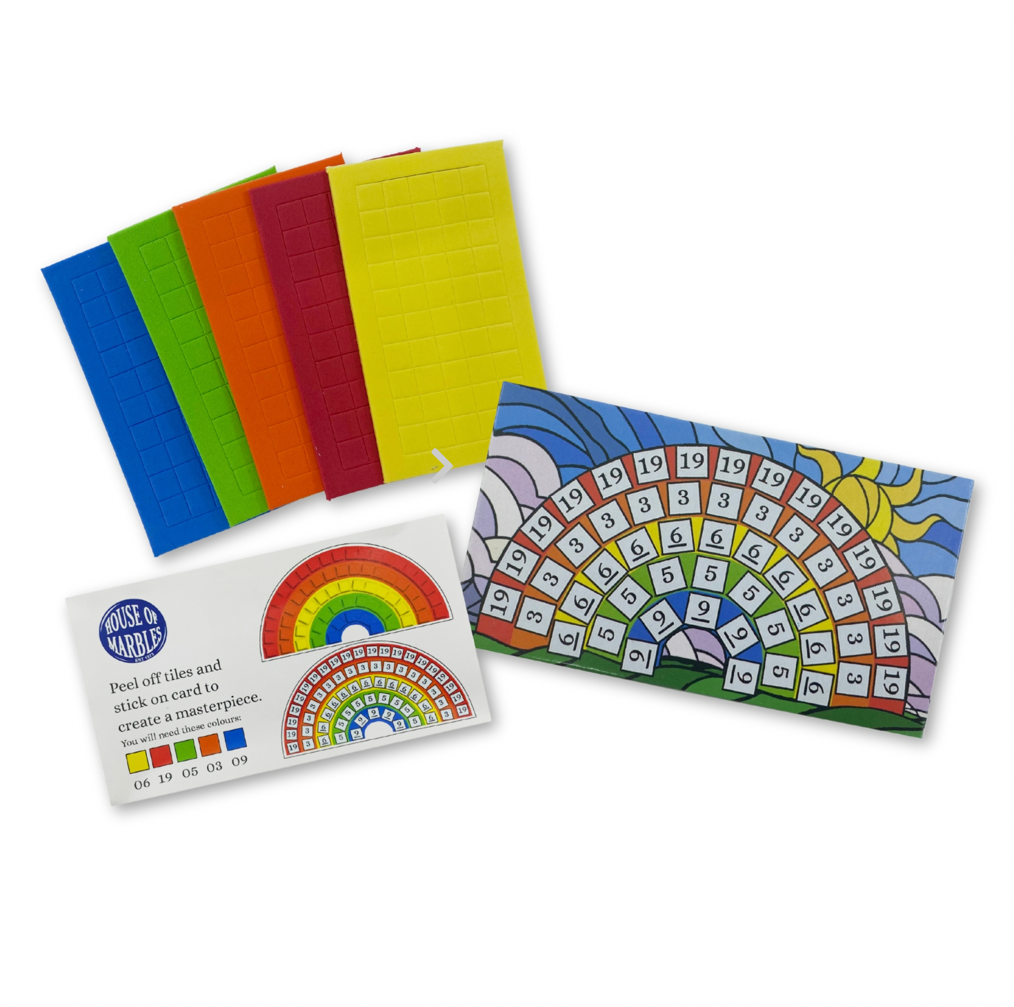 Create your own mini masterpiece with this little craft art kit. Includes a rainbow card and dozens of colourful, soft, self-adhesive mosaic tiles to create a mosaic rainbow. A lovely addition to children’s party bags.