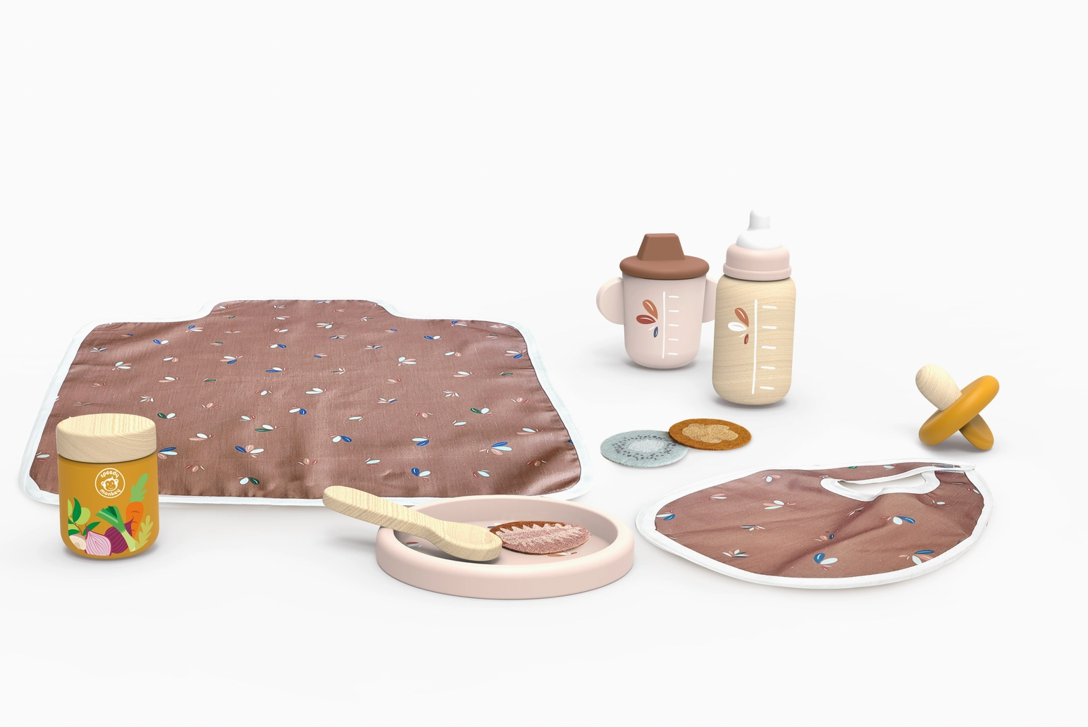 Explore the enchanting world of imaginative play with our My First Doll Set. Ideal for children aged 3 and above, this delightful set is designed to spark creativity and nurture early role-playing skills. Let your little one's imagination soar as they engage in hours of interactive play with this charming doll set. Crafted from high-quality wood, this set is not only durable but also safe for your child.