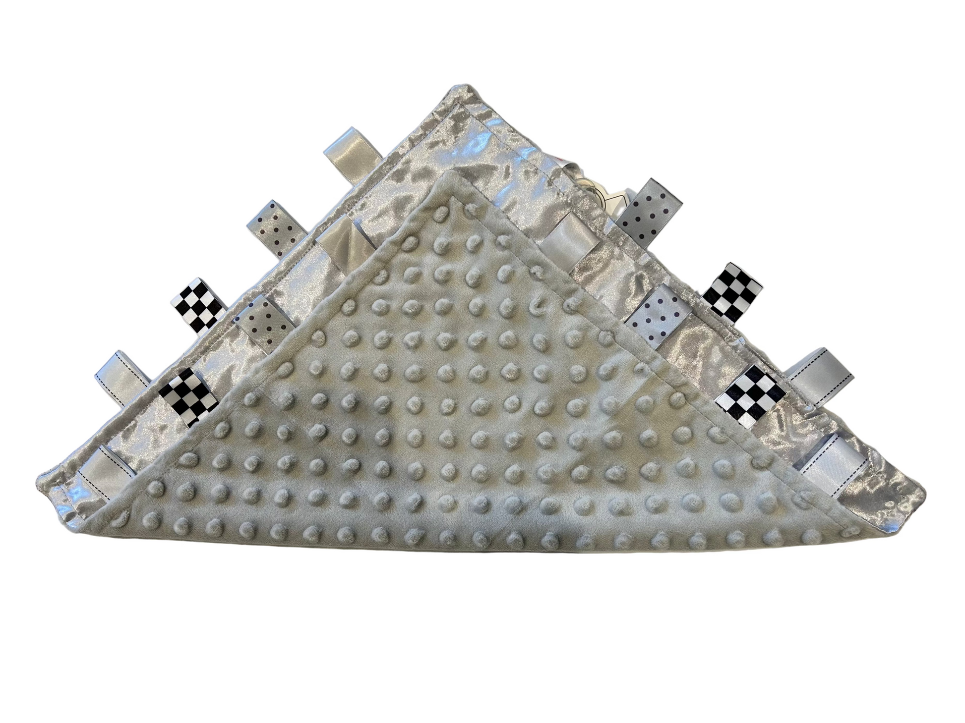 Colour: Grey spot comforter with black, white and grey tags