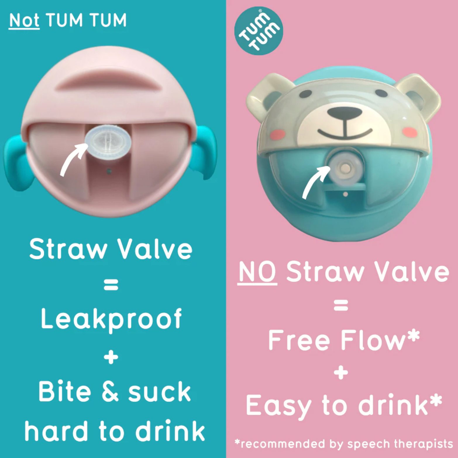 The TUM TUM Tippy Up Sippy Cup has a nifty weighted straw that follows the liquid as the cup is tipped up, so that the user is never sucking at fresh air. Nor does it contain any sort of valve, meaning that the little one doesn’t have to suck hard to release the liquid.