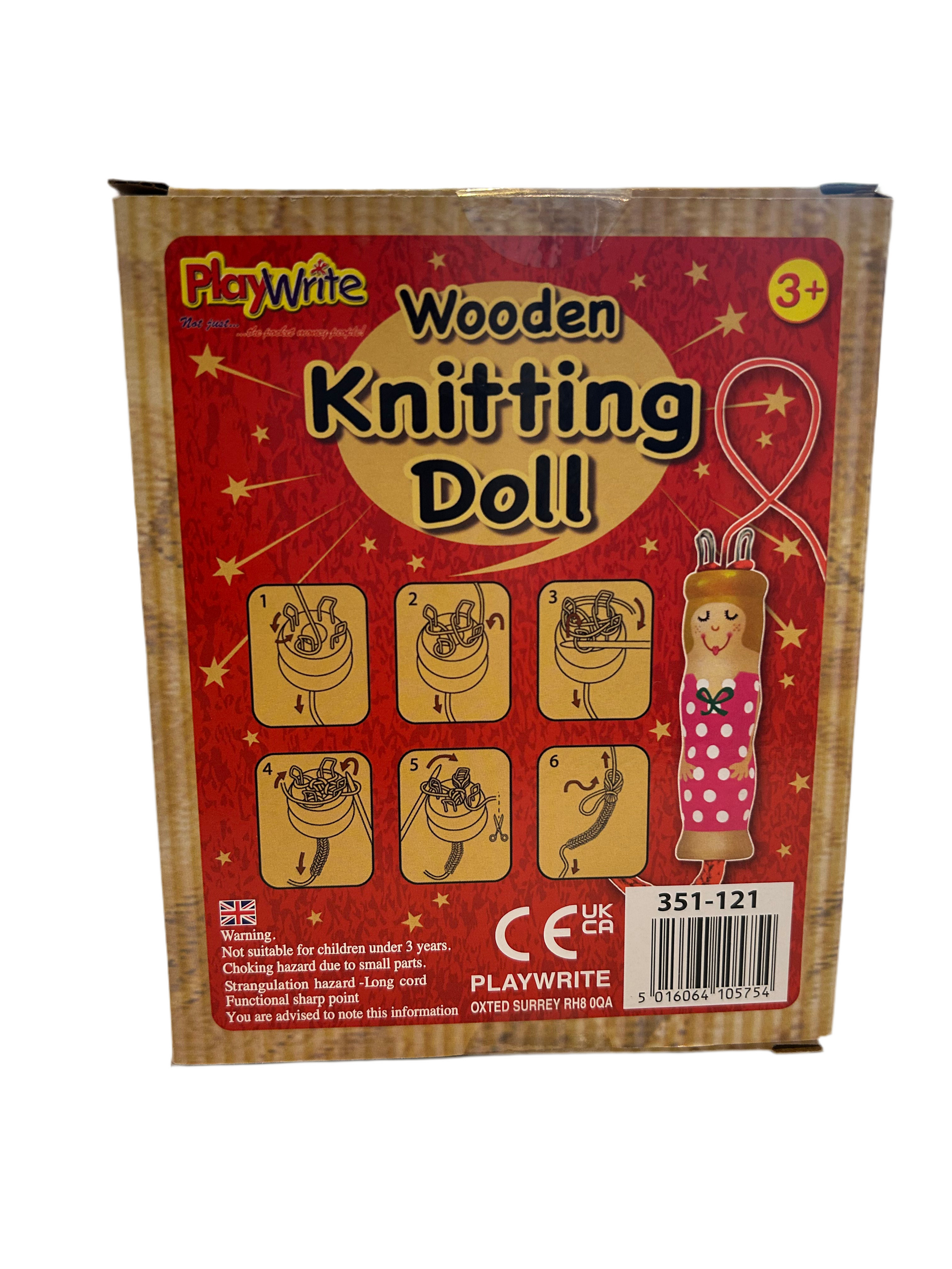 Traditional wooden knitting bobbins with wool and a crochet hook. Create mini scarves, keyrings and other great craft items. Classic childrens craft toy to inspire their imagination and give hours of fun!